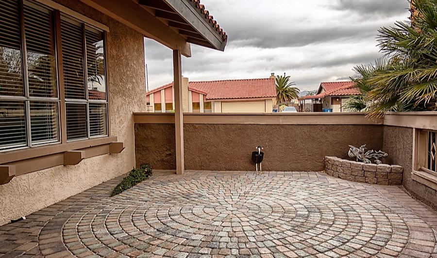 The front yard additions flows nicely in with the backyard. Pavers were installed in the backyard that wrap around to include the driveway as well as the courtyard.